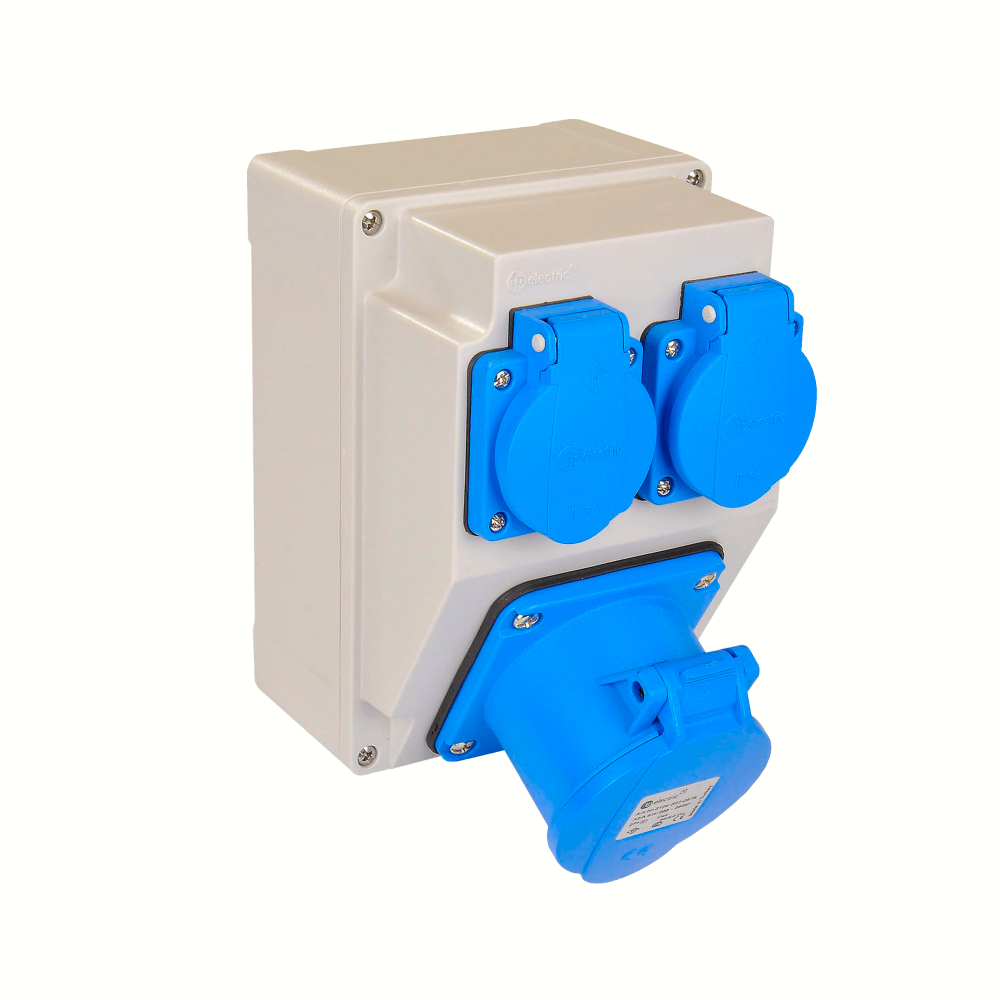 Бокс 120x170мм з розетками: силова 32A/3 (3Р, 1шт), панельна 16A (2шт), IP44, TP electric