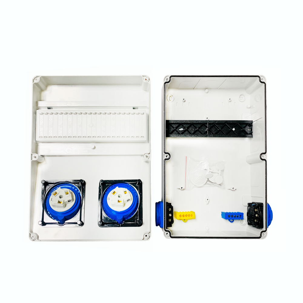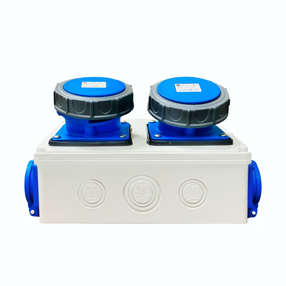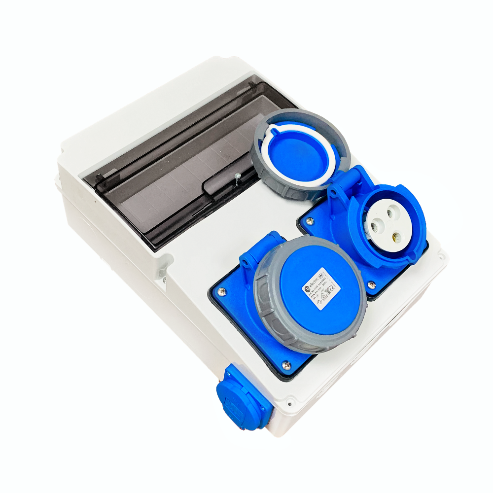 Бокс для автом.вим. 220x300мм з розетками: силова 32А/3 (3Р, 2 шт), панельна 16А (2 шт), ІР67
