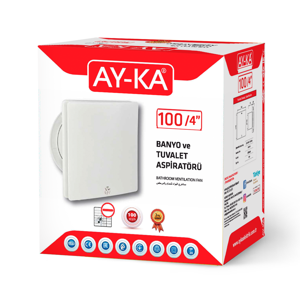 Вентилятор 100мм, 12W, 158х158х72мм, білий, AY-KA, (25 103 00)