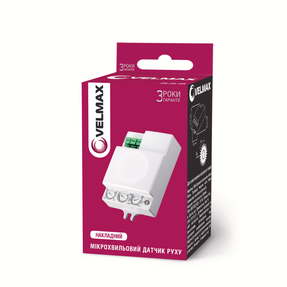 Датчик руху мікро-хвильовий VELMAX V-MS-05, AC220-240V, кут 180°/360°, (ST701E)