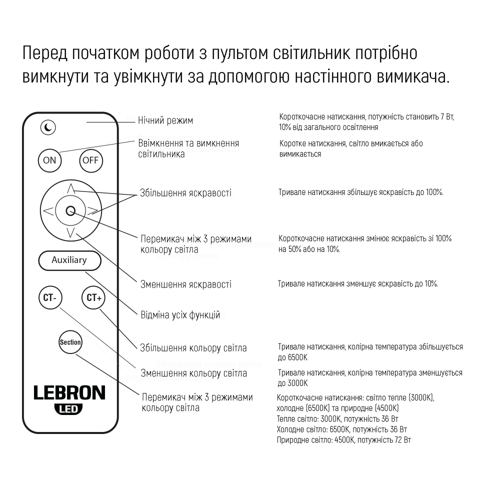 LED світильник LEBRON L-CL-Moon-Milky-RWh-Gr, max 36Wx2, 3000-6500K, пульт, батарейки 2шт, 230V
