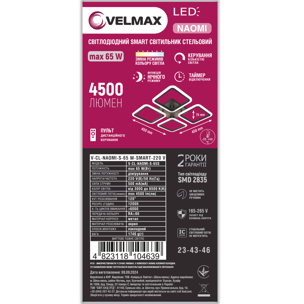 LED світильник VELMAX V-СL-NAOMI-S, max 65W, 3000K-6500K, 4500Lm, пульт ДК