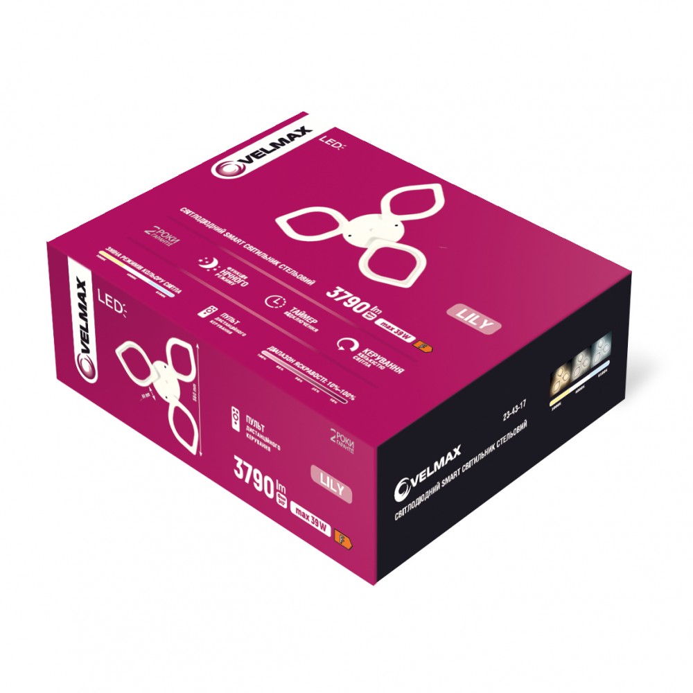 LED світильник VELMAX V-CL-LILY-3Wh, max 39W, 3000K-6500K, пульт, блок живлення, білий, 230V