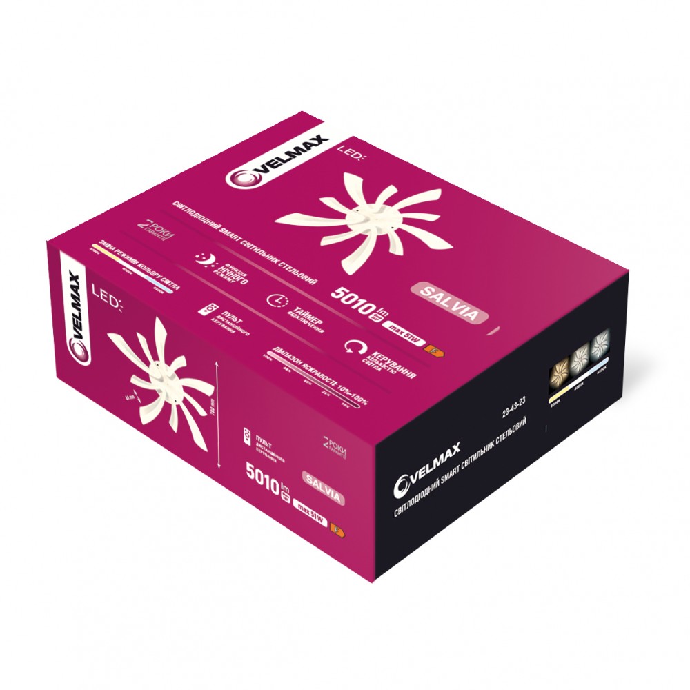 LED світильник VELMAX V-CL-SALVIA-5Wh, max 51W, 3000K-6500K, пульт, блок живлення, білий, 230V