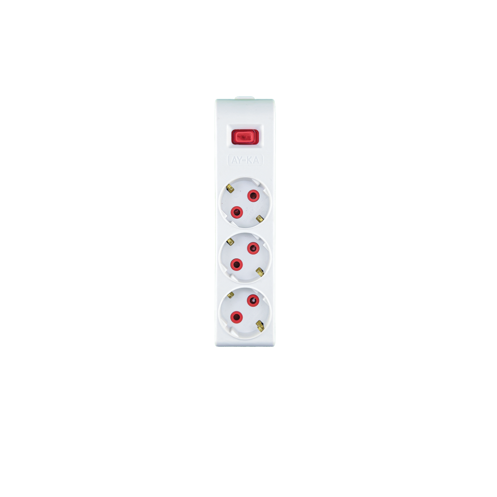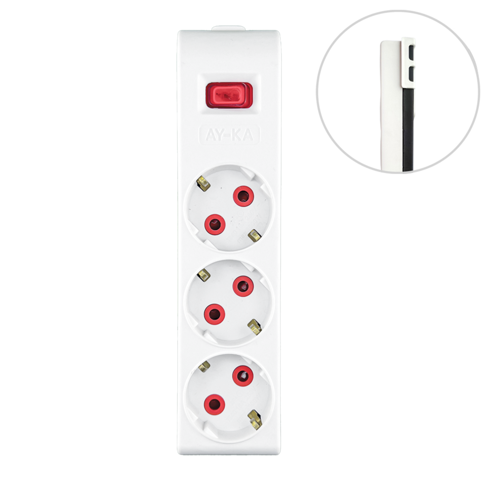 Колодка 3 гнізда, з/з, 16А, з вимикачем, біла, AY-KA (22 0301 000)