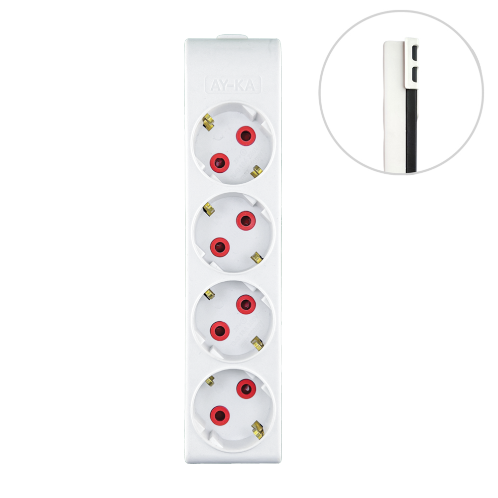 Колодка 4 гнізда, з/з, 16А, біла, AY-KA (22 0400 000)