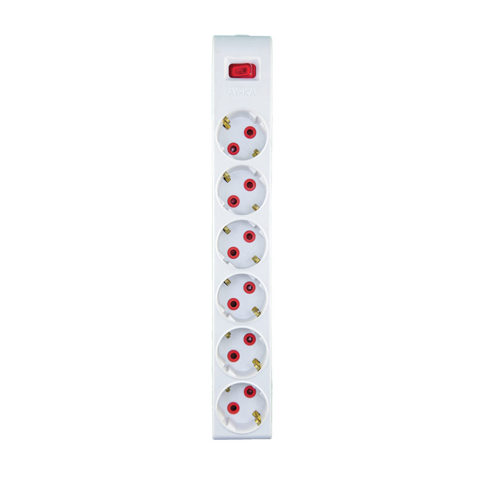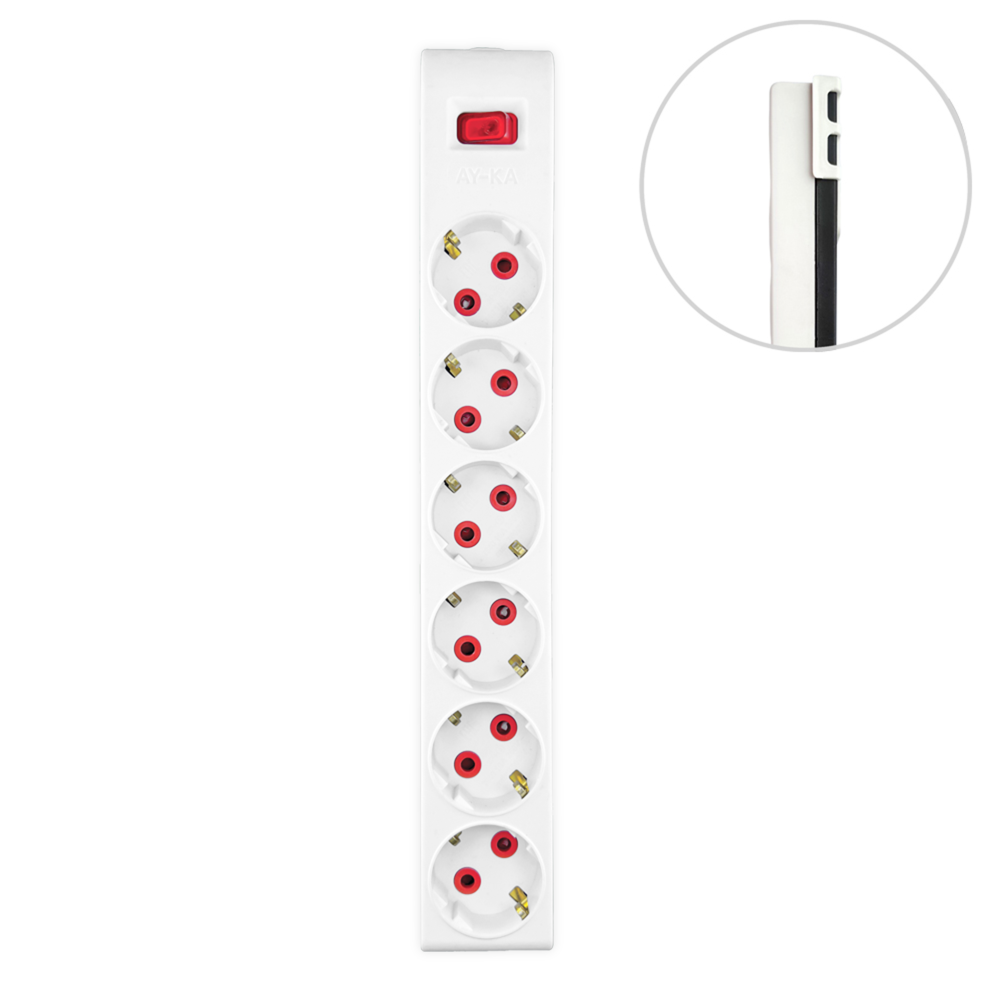 Колодка 6 гнізд, з/з, 16А, з вимикачем, біла, AY-KA (22 0601 000)