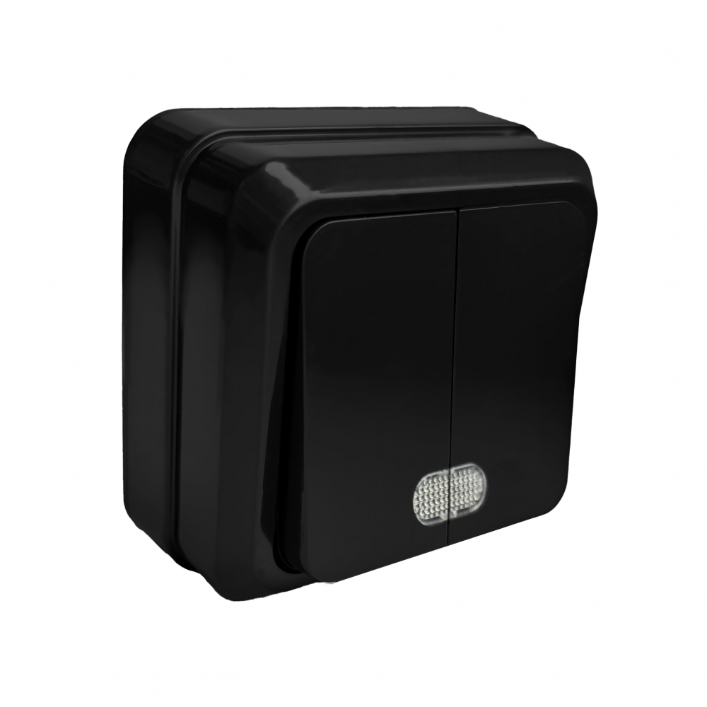 Вимикач 2 кл, 10А, з світл. біл. індикатором (Б), "Julia", чорна